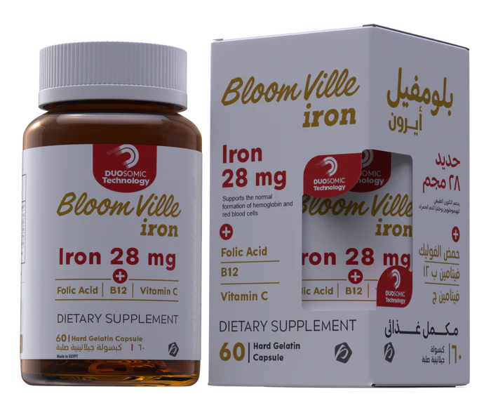 Bloomville Iron Capsules are formulated to support your body’s essential functions from energy production to cognitive performance. Each capsule delivers a balanced blend of elemental iron (28mg), folic acid, vitamin B12, and vitamin C to improve absorption and effectiveness.