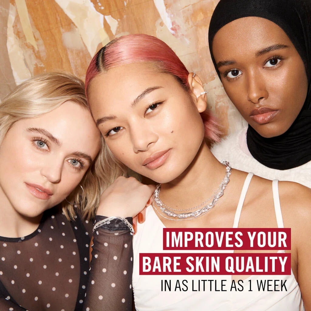 - Buildable formula with a radiant finish infused with caffeine to wake up skin, vitamin C to brighten and even skin tone, and 2% niacinamide for firmer-looking skin